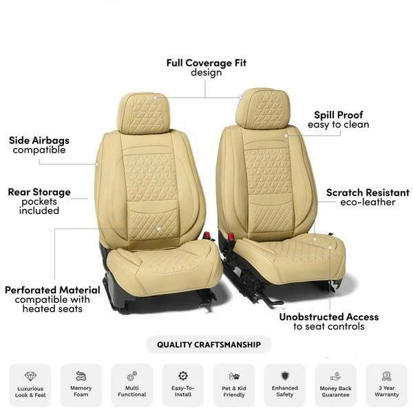 Unlike generic seat covers mass-produced to fit multiple models, CarSilk seat covers are custom-tailored to your exact vehicle specifications. This ensures a flawless fit, superior comfort, and a premium look that seamlessly integrates with your car’s original interior design.
